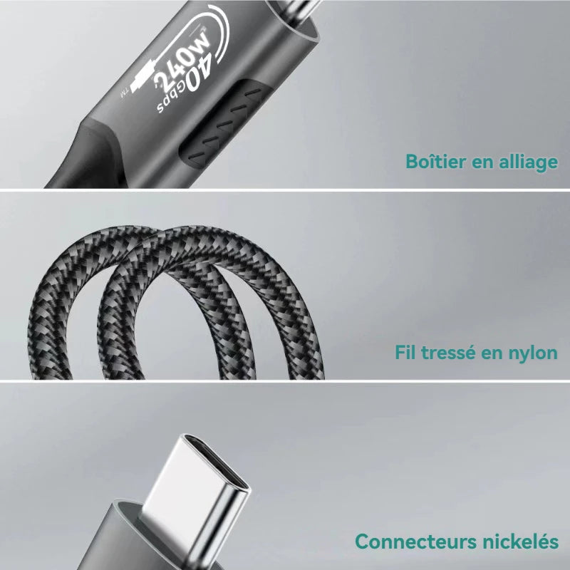 Profitez de la vitesse, de la fiabilité et de la polyvalence de notre câble USB4, pour une expérience de travail et de divertissement sans compromis.
